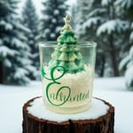 Topping the clean, white wax is a beautiful, hand-poured holiday tree, evoking the quiet beauty of nature. The clear jar allows the flame to cast a cozy, flickering glow, perfect for setting the mood on a chilly evening.